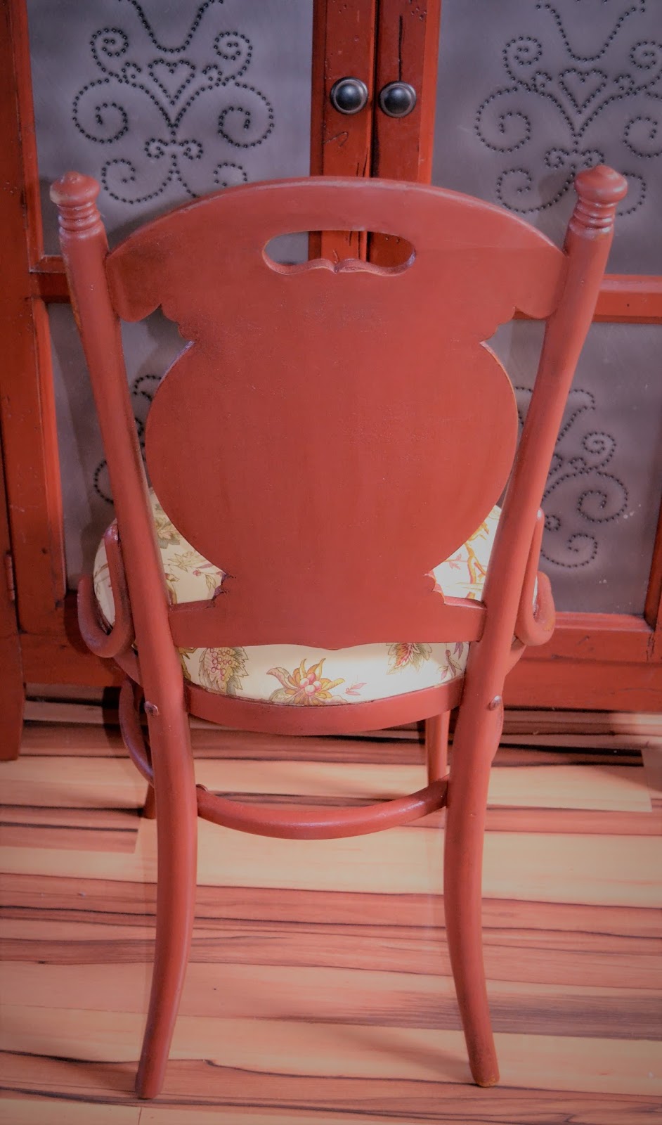 I painted this chair with two coats of Benjamin Moore, Colonial Brick - in eggshell latex, allowing each coat to dry completely and doing just a quick, light sand between coats.